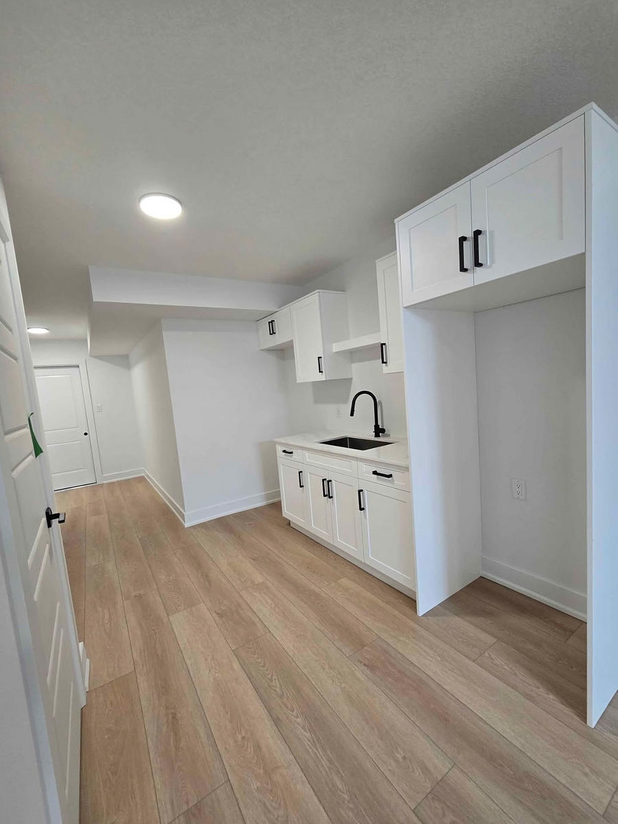 Our comprehensive service list covers all interior needs, from painting walls, ceilings, doors, and trims to installing LVP, 12×24 tile, and refinishing parquet flooring. We specialize in kitchen modernizations featuring new cabinets, quartz countertops, and backsplash tile, while also handling bathrooms through vanity installations and tile regrouting. Additionally, we take care of all necessary drywall, caulking, and minor electrical and plumbing repairs.